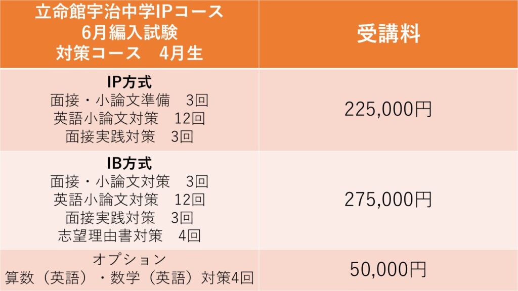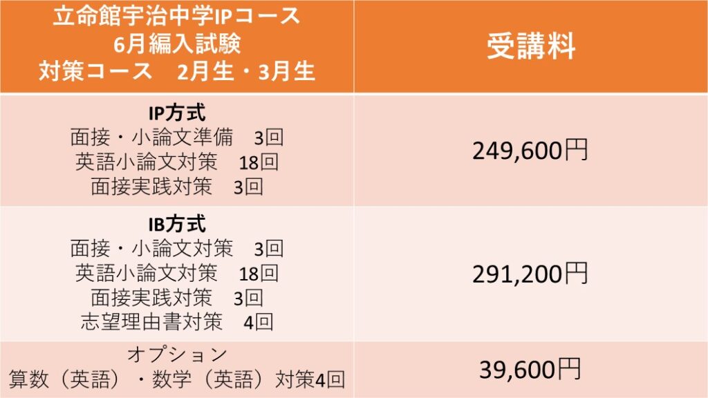急な帰国が決まった方対象の4月スタートのコース設定もありますが、短期間のハードな対策となりますので、2月・3月生コースの受講をお勧めします。
